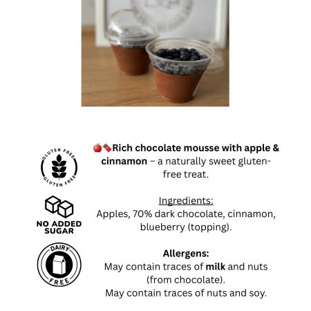 • Rich chocolate mousse with apple & cinnamon and blueberry