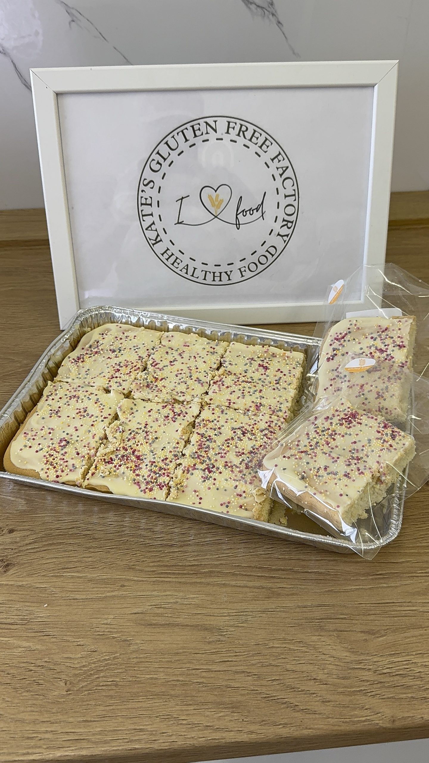 Take a trip down memory lane with this classic old school cake – now in a gluten-free version! A light and fluffy vanilla sponge, topped with creamy white chocolate and finished with colourful sprinkles for that nostalgic touch. Perfect for parties, family gatherings, or simply as a sweet treat with a cup of tea.